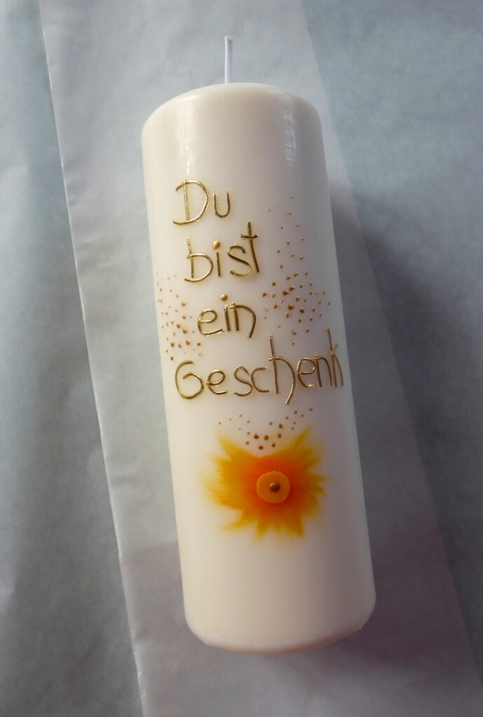 - Titel „Du bist ein Geschenk Eine sehr Mut machende und aufbauende Kerze die den Selbstwert stärkt, aufgeladen, gefüllt und erfüllt mit Liebe in Wort und Schrift! Größe: 22cm hoch 7,5cm breit Preis: 28,90 Zuzüglich Porto