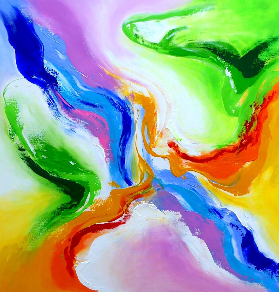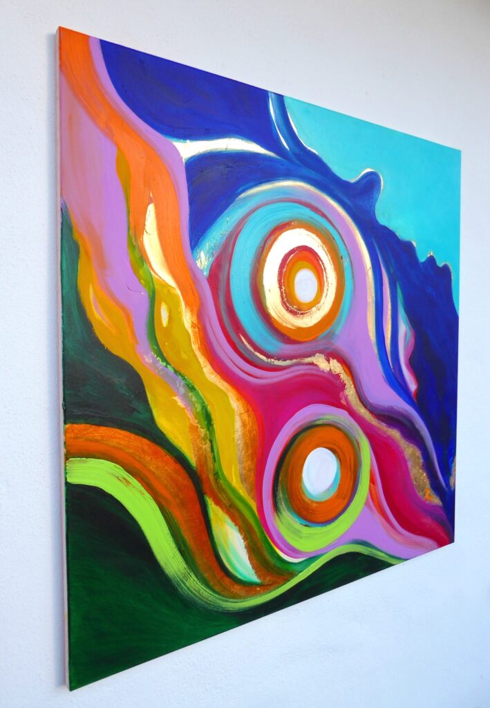 - Titel “ Leichtigkeit im SEIN “ Größe: 80 x 80cm Preis: 800,- Euro Material: Leinwand auf Keilrahmen. Acryl