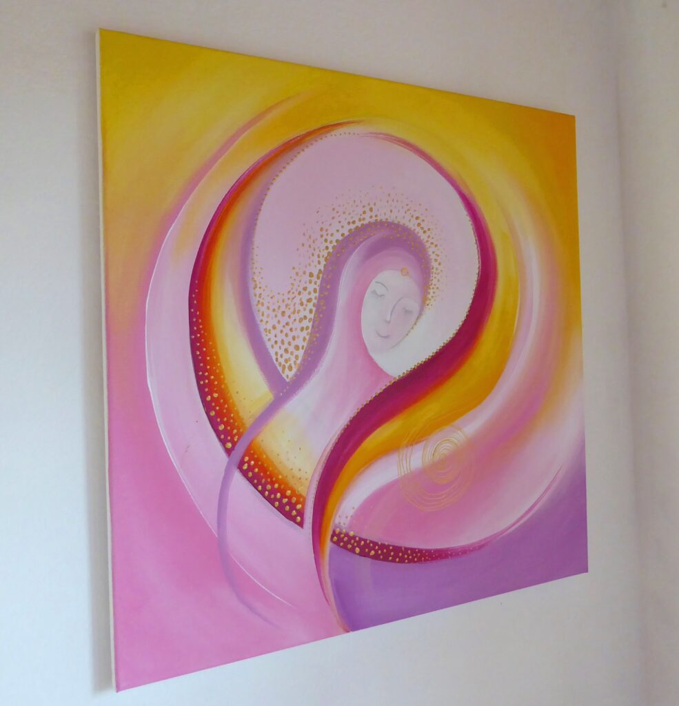 - Titel “ Engel der Herzkraft “ Größe: 60 x 60cm Preis: 680,- Euro Material: Leinwand auf Keilrahmen. Acryl